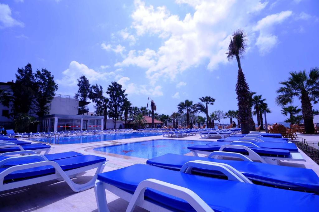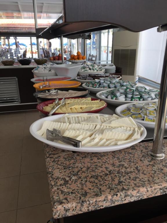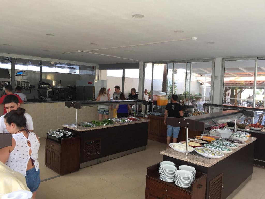 Zilnic este servit un mic dejun tip bufet. Restaurantul hotelului are vedere la mare si serveste preparate culinare din bucătăria turcească si internatională. Barul de pe plajă oferă diverse cocktailuri si băuturi răcoritoare.