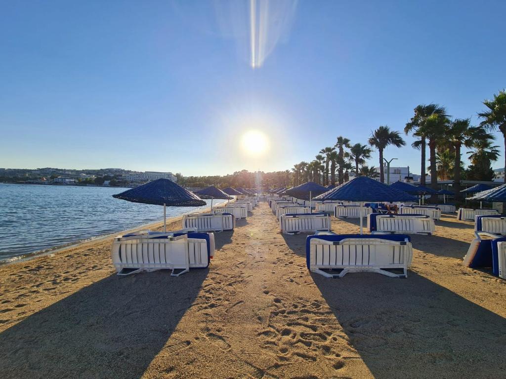 Hotelul Nagi Beach se află la mai putin de 4 km de centrul orasului Bodrum si la 40 de minute de mers cu masina de Aeroportul Milas-Bodrum. Satul Turgutreis de pe litoral este la 18 km de hotel.