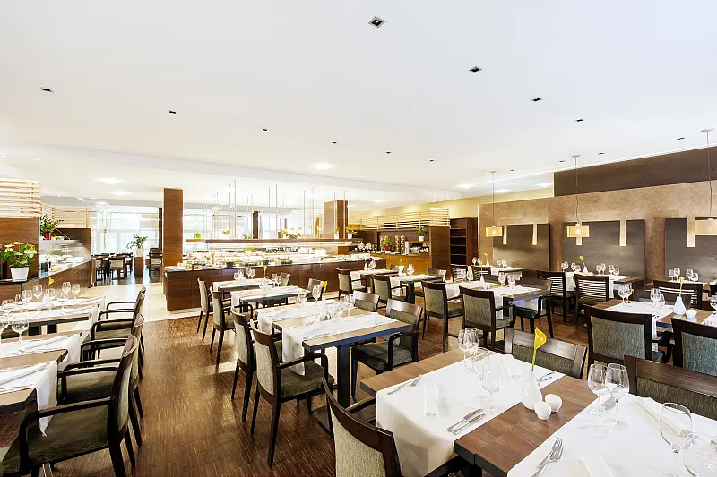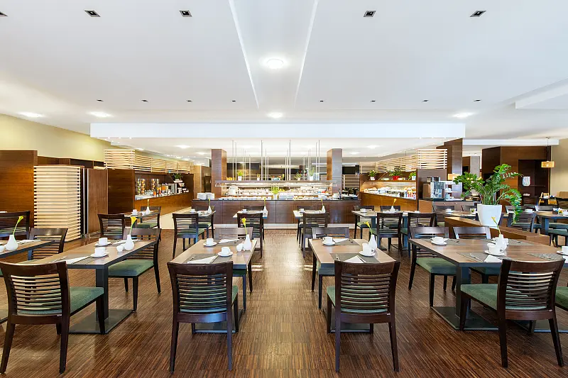 A rich breakfast buffet is offered in the morning. For lunch and dinner, overnight guests are served dishes of traditional and international cuisine in the restaurant at reduced prices. An early bird breakfast is available for guests who have just landed or are leaving early in the morning.
