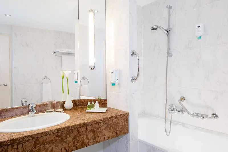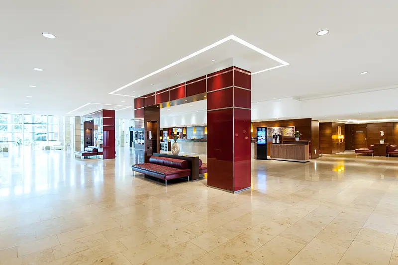 The NH Vienna Airport Conference Center is conveniently located directly across from the arrivals hall of Vienna International Airport, making it an ideal choice for late arrivals or early departures. WiFi is available free of charge. The conference and event center with a total area of 2,000 m² offers space for up to 500 people in 21 conference rooms. All kinds of conferences and events can be organized in the modern, air-conditioned rooms of the NH Vienna Airport Conference Center. Separate conference tables can be rented in the elegant lobby and bar for spontaneous meetings or conference days. A rich breakfast buffet is offered in the morning. For lunch and dinner, overnight guests are served dishes of traditional and international cuisine in the restaurant at reduced prices. An early bird breakfast is available for guests who have just landed or are leaving early in the morning. The 350 m² spa area includes a sauna, a steam bath, a fitness room, and a relaxation room. The library of the NH Vienna Airport Conference Center is available around the clock. The train journey to the center of Vienna takes only 16 minutes. Guide dogs are free of charge. facility / Ambiance: comfortable, modern target audience: group travellers, business travellers, roundtrip travellers, shorttrip travellers, cultural travellers, families