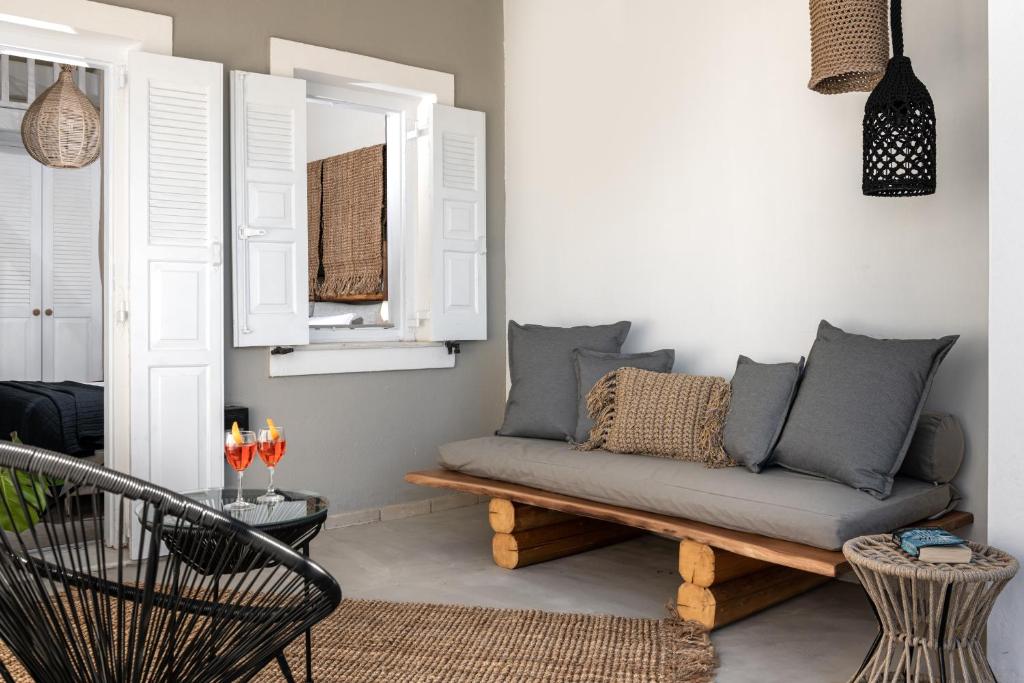 O stație de autobuz se află la 50 m. Portul Athinios este la 4 km, iar Aeroportul Santorini se află la 5 km. Parcarea publică gratuită este disponibilă in incintă.