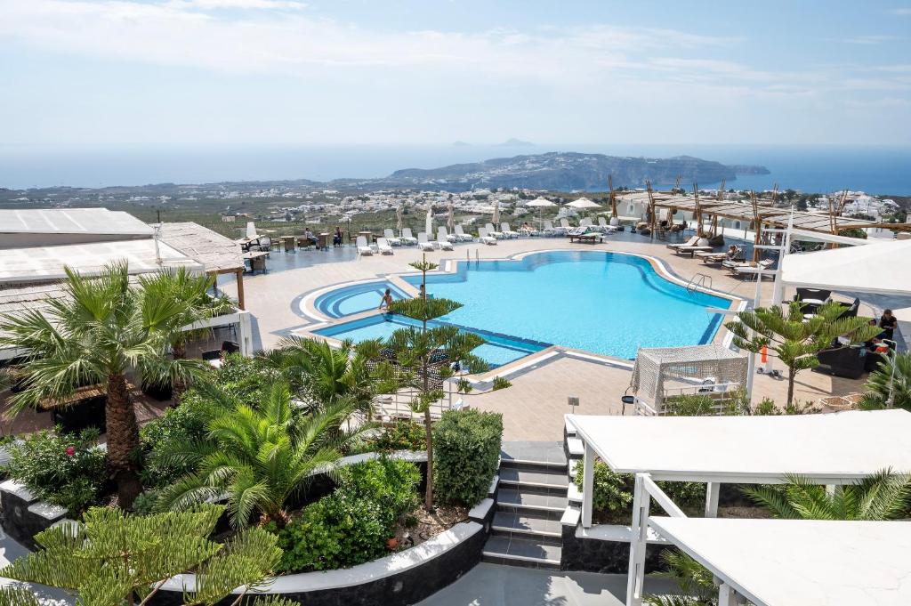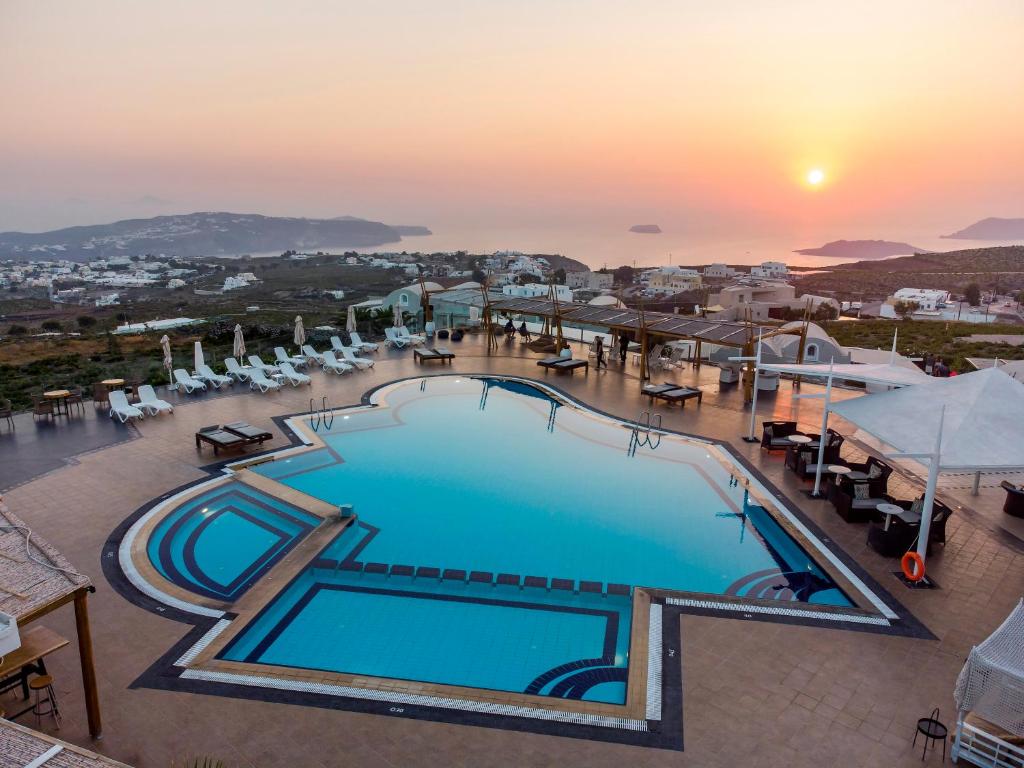 Hotelul Orizontes Santorini, situat in satul Pyrgos, se află langă o așezare tradițională, la doar 3 km de Fira. Hotelul oferă o recepție deschisă nonstop, un colț de internet cu WiFi gratuit și o piscină. Situat printre podgorii, complexul recent renovat Orizontes Hotel oferă cazare cu vedere la mare și la caldeiră.