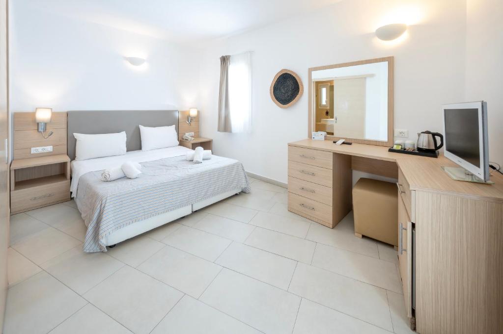 Toate camerele au balcoane sau verande private cu vedere la mare sau la grădină, baie privată, televizor LCD cu canale prin satelit, aer condiționat, mini-frigider, seif, uscător de păr și telefon direct.