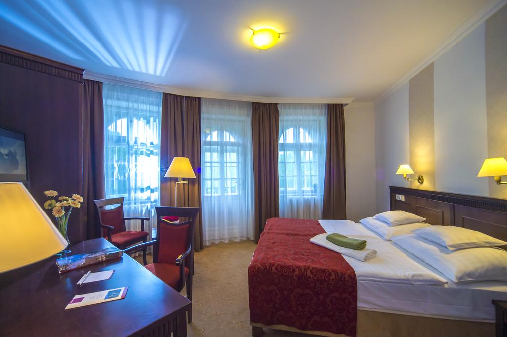 Cazare: în urma reconstrucţiei, camerele hotelului se asortează cu stilul clădirii. Cazarea este asigurată în 133 camere dintre care 101 sunt duble (34m2), 10 camere duble Junior, 21 suite şi 1 cameră single (26 m2 ). Camerele sunt dotate cu grup sanitar propriu, minibar, televizor şi telefon. În 18 camere există posibilitate de adăugare a unui pat suplimentar.