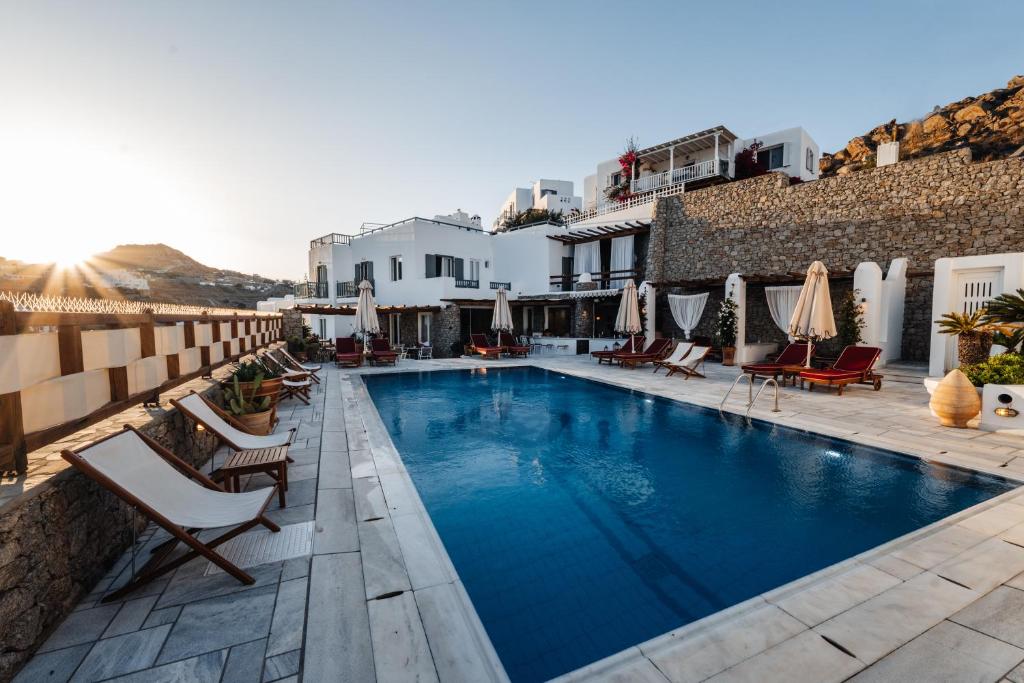 Pelican Bay este situat in Platis Yialos, la doar 300 de metri de celebra plajă și de stația de autobuz public, la 4 km de aeroport și centrul orașului Mykonos și de portul acestuia.