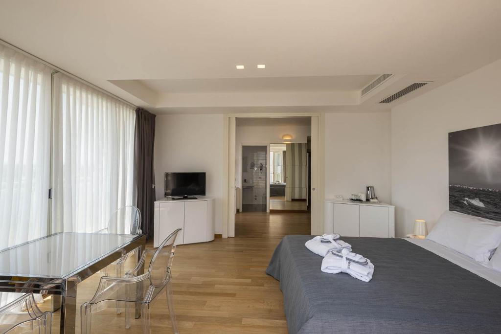 Hotel Perla Verde offers a range of air-conditioned rooms and suites. Most rooms have a balcony, and some also enjoy views of the sea.