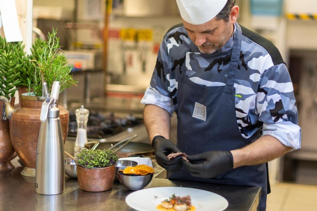 Breakfast is served buffet-style and includes sweet and savoury, organic and gluten-free items. The Verdepuro restaurant is open at lunch and dinner and offers international and regional dishes, including homemade pasta and desserts.