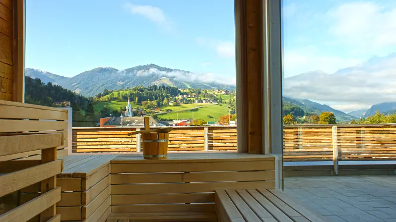 With us, you will find peace and relaxation in our small but cozy sauna area. A sauna, a steam bath and a relaxation room await you to relax in. The view from our sauna is another highlight of the hotel. Enjoy the soothing warmth while you let your gaze wander over the snow-covered peaks and wintry Schladming.
