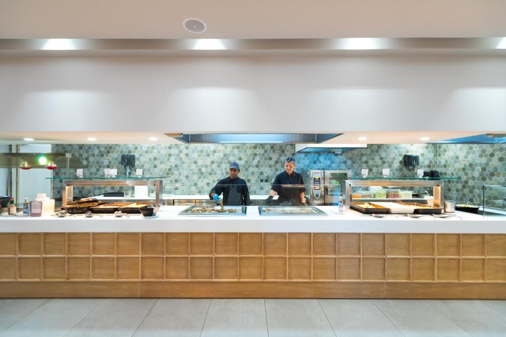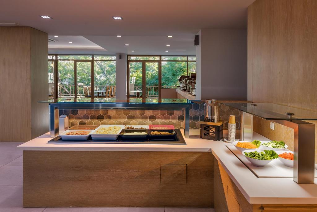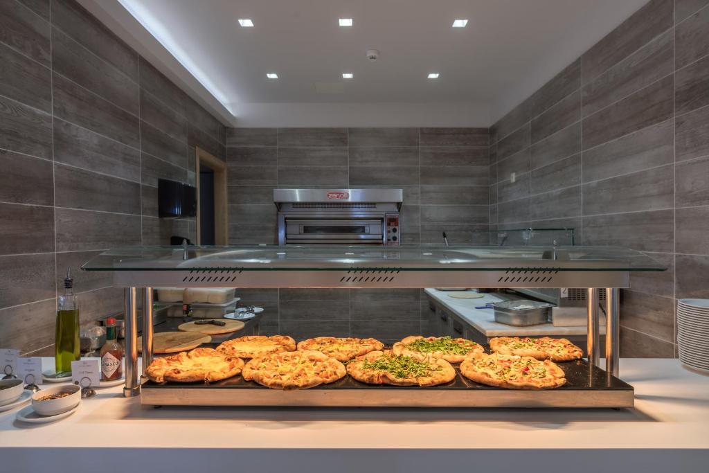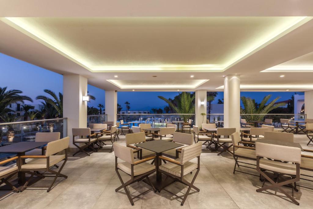Porto Bello Beach Hotel găzduiește un restaurant care servește mancăruri din bucătăria grecească, italiană și mediteraneană. La cerere, oaspeții pot beneficia și de preparate vegetariene și fără gluten.