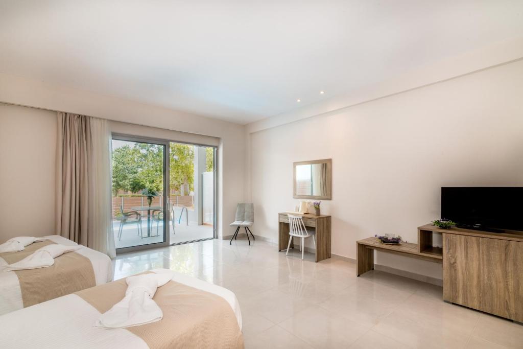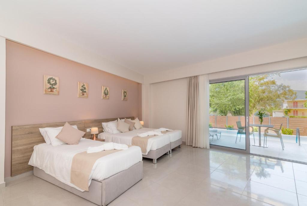 Hotelul Poseidon Beach se află pe malul mării, la 500 de metri de centrul orasului Laganas. Acesta oferă o piscină in aer liber, o piscină pentru copii si camere cu acces gratuit la internet WiFi.