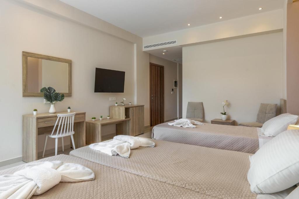 Toate camerele de la Poseidon Beach au aer conditionat, seif, minifrigider si TV cu ecran plat cu canale prin satelit. Baia privată este dotată cu uscător de păr.