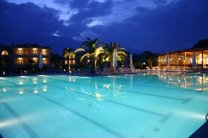 Acest hotel elegant de 4 stele oferă oaspeților săi o experiență completă de vacanță la mare, cu două piscine exterioare înconjurate de șezlonguri și umbrele, un restaurant principal cu preparate grecești și internaționale, precum și un bar la piscină pentru răcoritoare și cocktailuri.