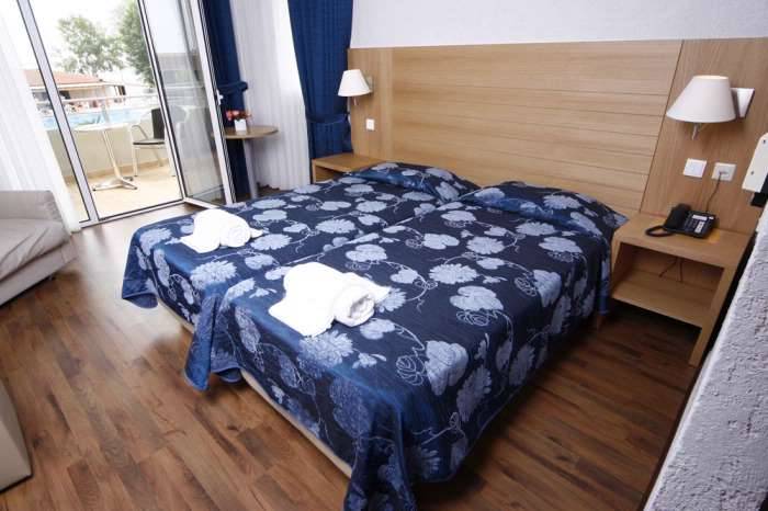 Camerele sunt decorate în nuanțe marine și dispun de balcoane private, majoritatea cu vedere spre mare. Facilitățile includ aer condiționat, TV prin satelit, mini-frigider și baie privată cu articole de toaletă gratuite.