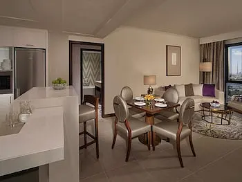 <strong>Property Location</strong><p>A stay at Pullman Dubai Creek City Centre Residences places you in the heart of Dubai, a 1-minute drive from City Centre Deira and 7 minutes from Grand Mosque. This family-friendly hotel is 3.7 mi (5.9 km) from Dubai Museum and 4.2 mi (6.8 km) from Gold Souk.<br> Distances are displayed to the nearest 0.1 mile and kilometer. <br /> <p>City Centre Deira - 0.1 km / 0.1 mi <br /> Deira Clocktower - 1.5 km / 0.9 mi <br /> Dubai Tennis Stadium - 1.8 km / 1.1 mi <br /> Hamarain Centre - 2.5 km / 1.5 mi <br /> Al Ghurair Centre - 3.1 km / 1.9 mi <br /> Dubai Creek Golf & Yacht Club - 3.3 km / 2 mi <br /> Fish Roundabout - 3.6 km / 2.2 mi <br /> Deira Twin Towers Shopping Centre - 3.8 km / 2.4 mi <br /> Naif Souq - 4.6 km / 2.8 mi <br /> Spice Souk - 5 km / 3.1 mi <br /> Creek Park - 3.6 km / 2.2 mi <br /> Al Nasr Leisureland - 3.8 km / 2.3 mi <br /> Al Maktoum Stadium - 4.1 km / 2.5 mi <br /> Mohammed Bin Rashid University Of Medicine and Health Sciences - 4.3 km / 2.7 mi <br /> Al Seef - 4.5 km / 2.8 mi <br /> </p><p>The nearest airports are:<br />Dubai Intl. Airport (DXB) - 4.7 km / 2.9 mi<br /> Sharjah (SHJ-Sharjah Intl.) - 28.3 km / 17.6 mi<br /> Al Maktoum Intl. Airport (DWC) - 66.2 km / 41.1 mi<br /> </p><p>The preferred airport for Pullman Dubai Creek City Centre Residences is Dubai Intl. Airport (DXB). </p><br> <strong>Rooms</strong><p>Make yourself at home in one of the 133 individually decorated guestrooms, featuring kitchens with full-sized refrigerators/freezers and ovens. Wired and wireless internet access is complimentary, while DVD players and cable programming provide entertainment. Conveniences include phones, as well as safes and desks.<p> <strong>Dining</strong><p>Enjoy international cuisine at Medley Restaurant, a restaurant which features a bar/lounge, or stay in and take advantage of the 24-hour room service. Wrap up your day with a drink at the poolside bar. Buffet breakfasts are available daily from 6:30 AM to 10:30 AM for a fee.<p> <strong>Business, Other Amenities</strong> <p>Featured amenities include complimentary wired internet access, a business center, and express check-in. Event facilities at this hotel consist of a conference center and 9 meeting rooms. A roundtrip airport shuttle is provided for a surcharge (available 24 hours), and free valet parking is available onsite.<p>