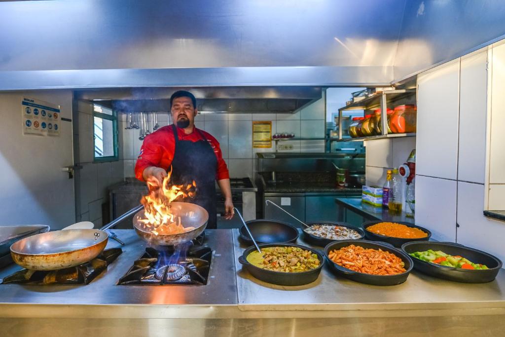 Micul dejun și cina sunt servite sub formă de bufet. Pentru pranz, restaurantul oferă un meniu à la carte. Există și un bar care servește băuturi răcoritoare la piscină.