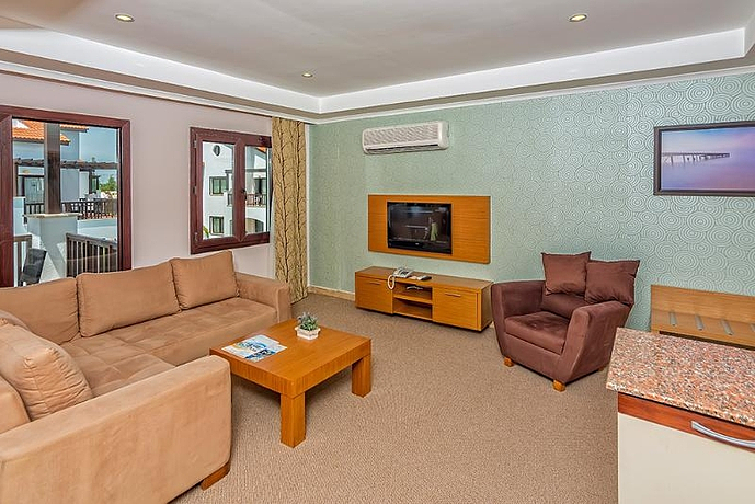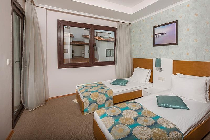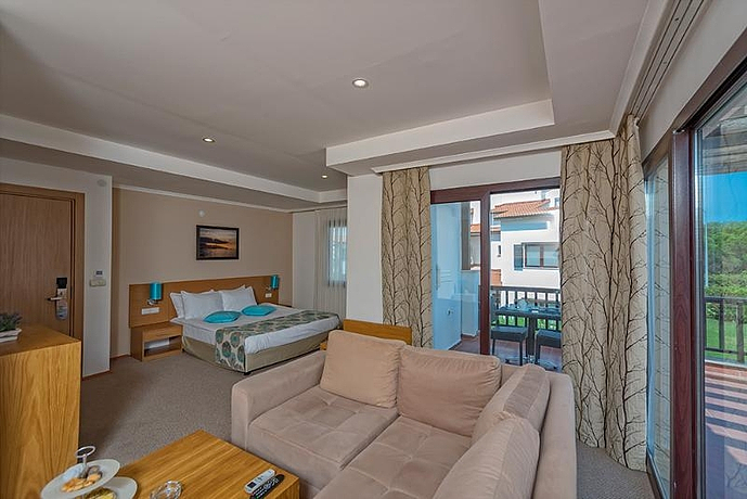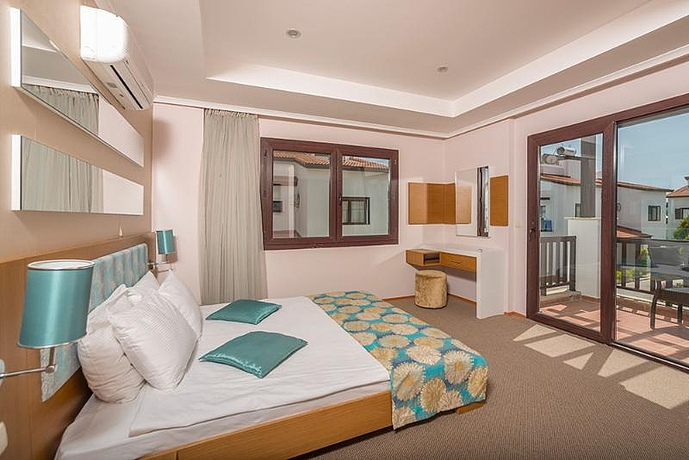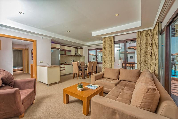 HOTEL: Este complejo reformado en 2010, cuenta con un vestíbulo, una peluquería, sala de juegos, sala donde puede ver la televisión, 2 restaurantes, un chiringuito, un bar de piscina y un bar. Se ofrece a los huéspedes área infantil para que los niños jueguen, club infantil y wifi. Con cargo extra encontrará servicio de lavandería. También ofrece un parking, alquiler de bicicletas y servicio de traslado a la playa gratis. SITUACIÓN: Al lado del establecimiento los clientes podrán encontrar un campo de golf. A 2 km se dispone de Kadriye, a 500 metros hay la estación de autobuses. A 40 kilómetros está situado Antalya, a 30 kilómetros tiene disponible el aeropuerto de Antalya. HABITACIÓN: Las habitaciones tienen salón-dormitorio y una cocina pequeña. Los clientes pueden encontrar chalés de tres dormitorios. También cuentan con cama doble o king size, cuarto de baño con ducha, una bañera, secador de pelo, balcón o terraza, tienen aire acondicionado y calefacción individual. También cuentan con televisión de pantalla lcd con canales vía satélite o por cable, reproductor de dvd, radio, equipo de alta fidelidad, teléfono de línea directa, caja de seguridad con cargo extra y conexión a internet. Además tienen lavadora, set de plancha, lavavajillas, placas y nevera. INSTALACIONES: Puede encontrar piscina exterior, piscina interior, una piscina para los más pequeños, una piscina climatizada, gimnasia acuática y un chiringuito. Los clientes tienen disponible un spa con sauna y hammam. Con cargo extra puede encontrar baño de vapor, el servicio de masajes, tratamientos de spa, un gimnasio y una pista de tenis. También puede encontrar minigolf, ping pong, baloncesto, voleibol, volley playa, billar mediante un abono extra y montar en bicicleta. Se ofrece a los huéspedes espectáculos, programa de actividades y deportes acuáticos. En la playa puede encontrar tumbonas mediante un abono extra y sombrillas. A unos 300 metros hay un campo de golf. COMIDAS: En cuanto a la gastronomía el establecimiento cuenta con desayuno dispuesto en buffet, almuerzo y cena servido a la carta y barbacoa. MÉTODOS DE PAGO: Se admite American Express, Diners Club, Mastercard y Visa.
