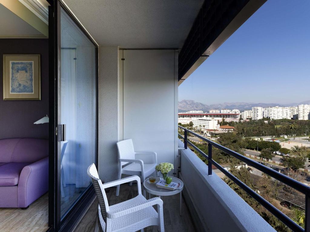 Situat in grădini exotice din Parcul Cultural Atatürk, acest hotel de 5 stele din apropierea plajei Konyaaltı are vedere la mare și la Munții Taurus. Oferă 3 restaurante și o piscină in stil lagună. Plaja Konyaalti se află la 300 de metri. Se oferă serviciu de transfer către plaja Aruna, plaja noastră privată. Camerele luminoase sunt decorate cu țesături bogate și oferă un balcon privat cu vedere la Antalya sau la Marea Mediterană. De asemenea, au TV cu ecran plat cu canale prin satelit și zonă de relaxare cu canapea.
