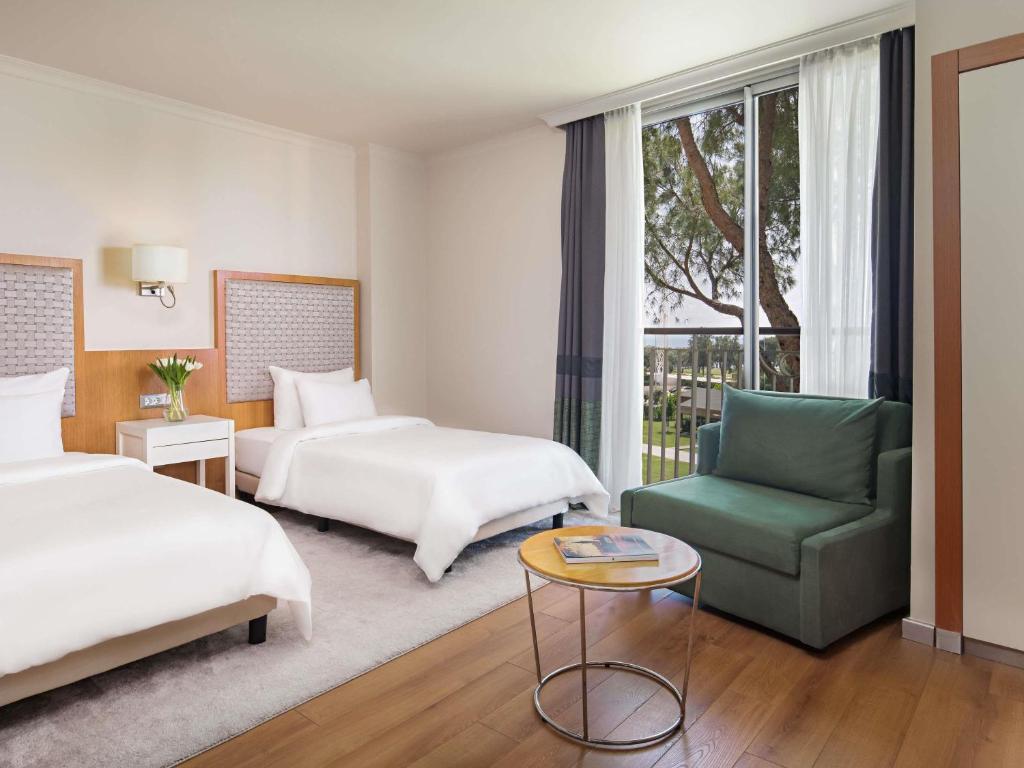 Camerele sunt dotate cu climatizare, un televizor cu ecran plat cu canale prin satelit, un minibar, o cafetieră, un duș, articole de toaletă gratuite și un birou. Camerele oferă o cutie de valori, iar unele camere includ un balcon sau vedere la grădină. Toate unitățile includ un dulap pentru haine și o un ibric electric.