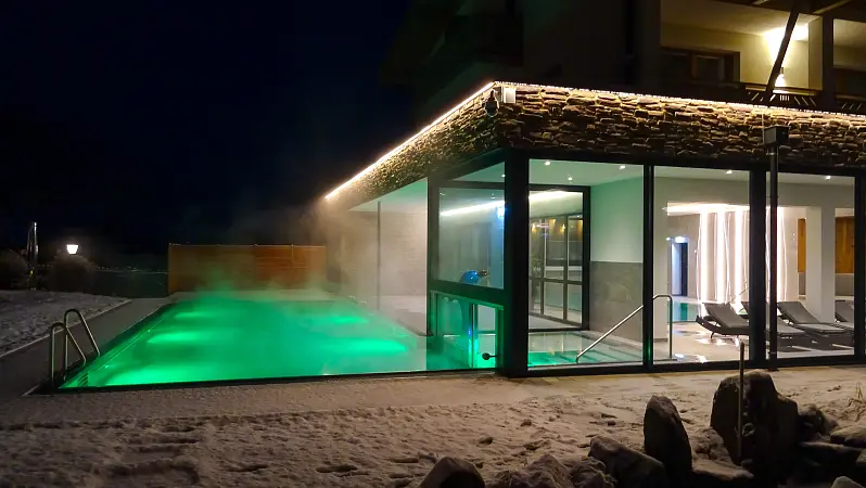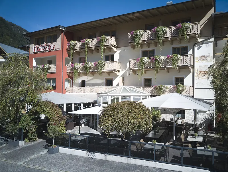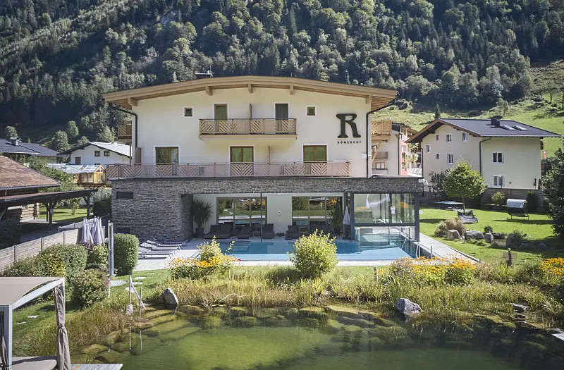 The 4-star Hotel Römerhof is located between Zell am See and the Großglockner in the centre of Fusch, 12 km from the Zell am See-Kaprun sports region. Relax in the hotel's own Römerspa with a new indoor pool with waterfall and counter-stream system as well as a new heated outdoor pool with indoor access and bubble loungers. In summer you can cool off in the natural bathing pond with sunbathing lawn and Kneipp facility. In winter, experience unlimited fun on the slopes on 408 (347 connected) kilometres with 121 lifts in the Skicircus Saalbach-Hinterglemm | Leogang | Fieberbrunn | Schmittenhöhe ski pass network in Zell am See | Kitzsteinhorn Kaprun! The varied pistes with the Kitzsteinhorn glacier area are an absolute highlight!
