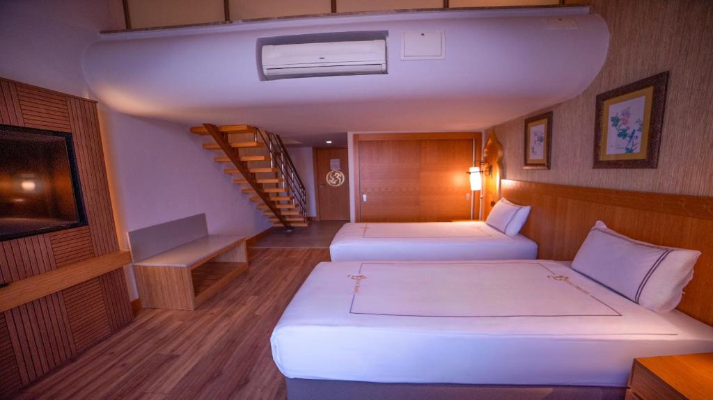 Toate camerele cu aer conditionat au un balcon cu vedere panoramică la mare sau la uscat. Fiecare cameră are mochetă, zonă de relaxare si măsută de toaletă. De asemenea, include un TV cu ecran plat cu canale prin satelit, minibar si seif.