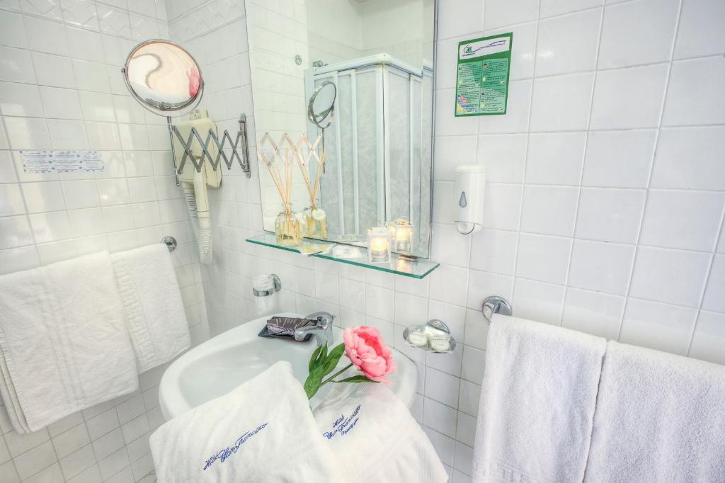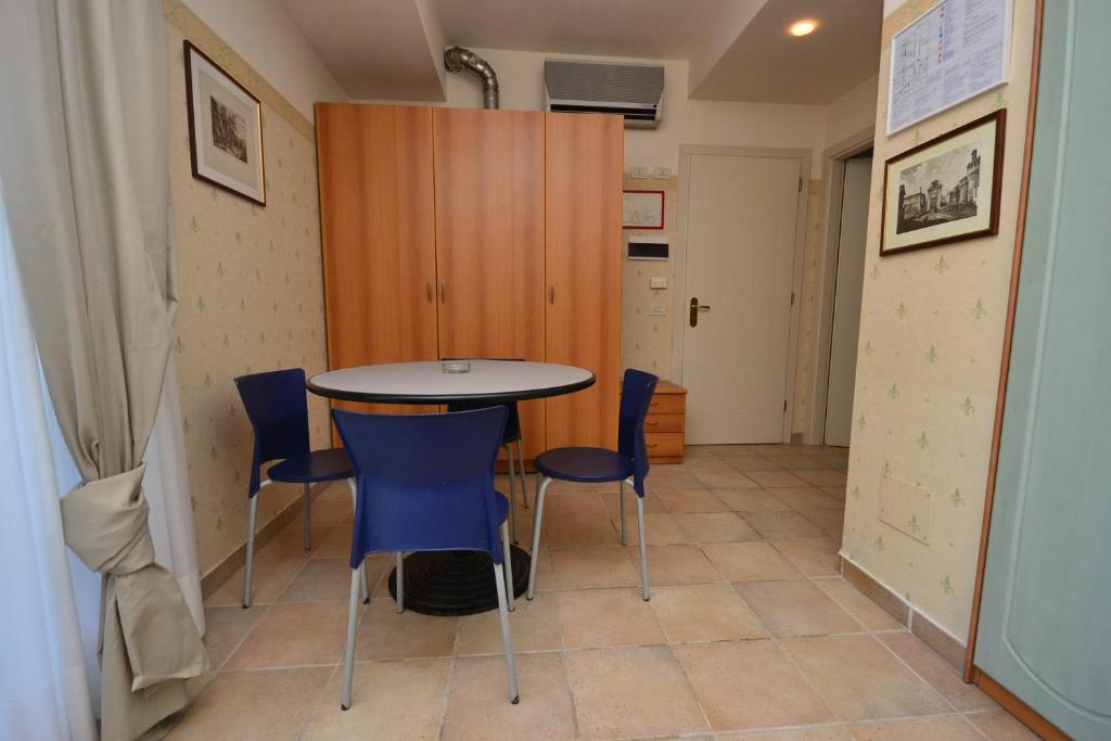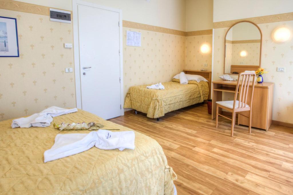 Camerele sunt decorate in stil clasic, oferind aer condiționat si TV LCD cu canale prin satelit. Balcoanele sunt mobilate cu măsută si scaune. Unele camere au vedere la Marea Adriatică, iar altele oferă vedere la grădină.