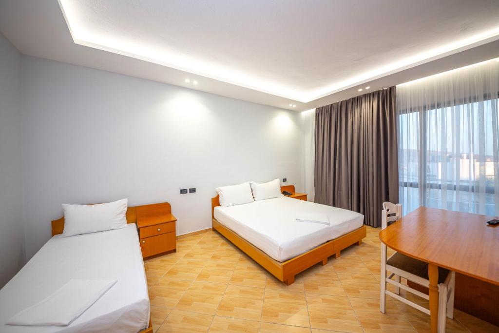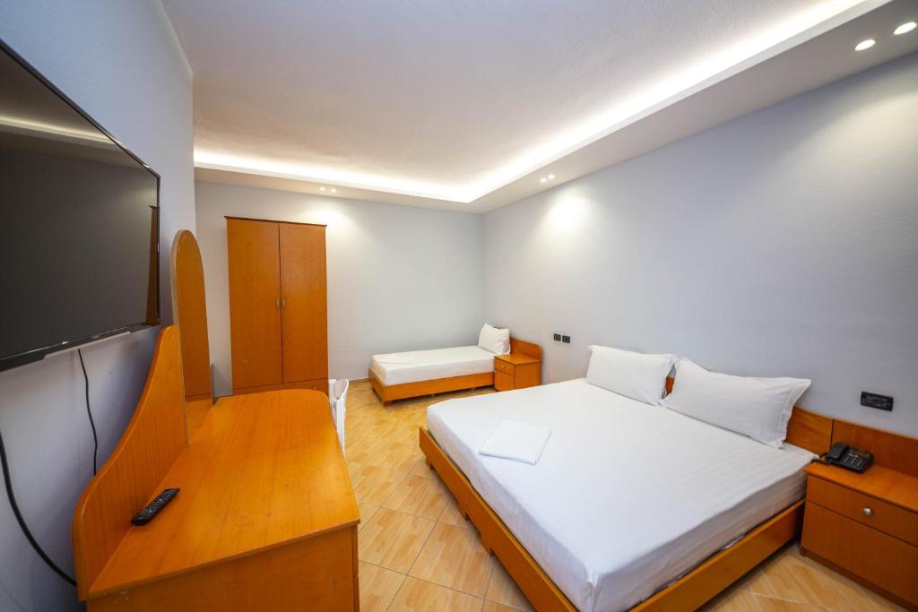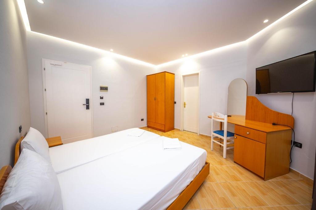 Cazare confortabilă: Hotelul Sea Breeze din Sarandë oferă camere de familie cu aer condiționat, baie privată și vedere la mare. Fiecare cameră include balcon, canapea extensibilă și facilități moderne, cum ar fi birou și televizor.