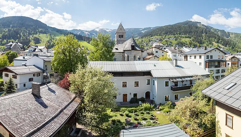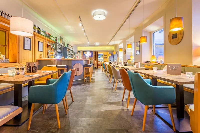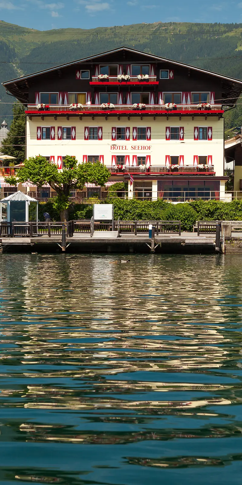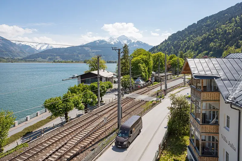 Cozy hotel in the center of Zell am See, located between Lake Zell and the pedestrian zone (a train line runs along the lake promenade and directly in front of the hotel) or the local mountain Schmittenhöhe. Breakfast in the cozy restaurant or on the terrace, both with a view of Lake Zell.