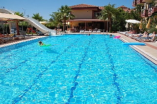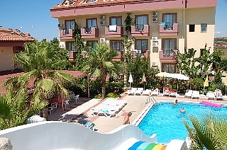 HOTEL: El hotel cuenta con 90 habitaciones, hall con recepción, wifi, una sala de televisión, un restaurante, bares, una piscina exterior y una piscina para niños. SITUACIÓN: Este hotel de encantador ambiente, está en Colakli, a unos 9 kilómetros está situado Side, a 12 km de Manavgat, a 600 metros puede encontrar la playa privada. Se ofrece servicio de traslado. Situado a una distancia de 55 kms del aeropuerto de Antalya.