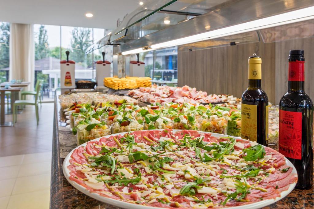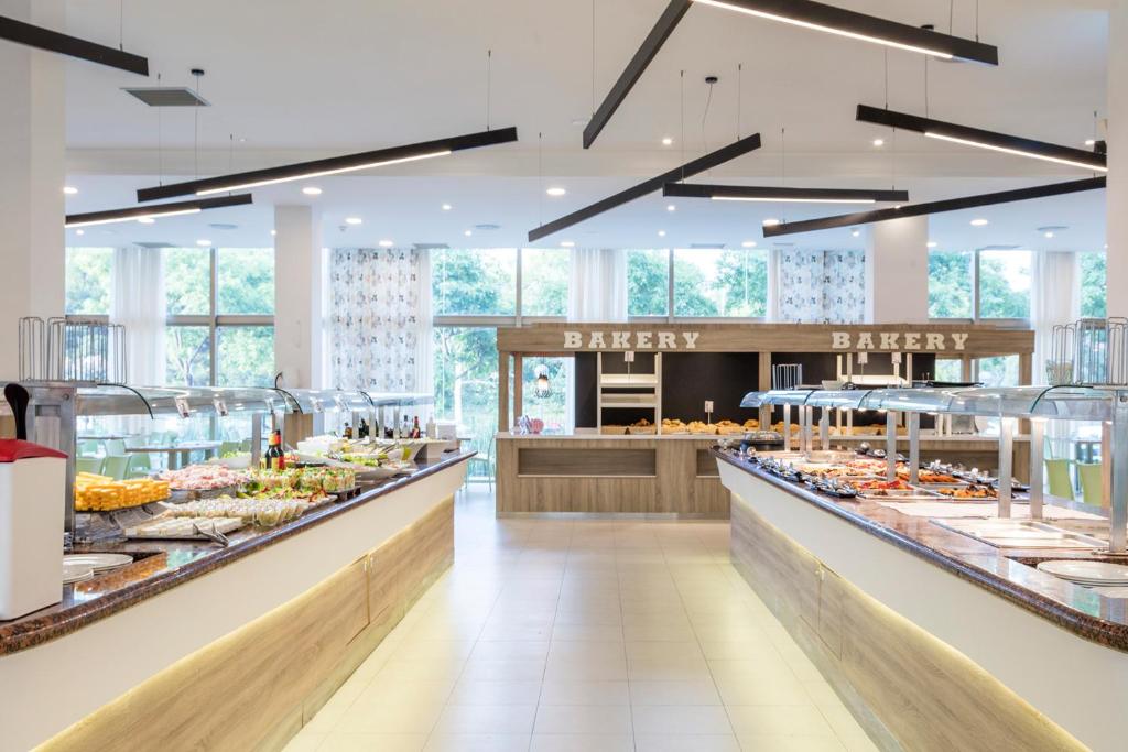 Restaurantul tip bufet serveste o selectie de mancăruri mediteraneene. Oaspeții se pot relaxa la snack barul din apropierea piscinei sau la pubul englezesc.