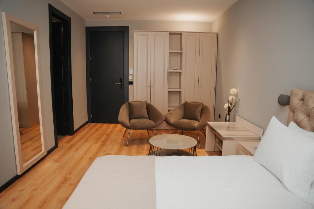 Camerele luminoase și confortabile sunt dotate cu aer condiționat, TV cu ecran plat, minibar și balcon - multe dintre ele oferind priveliști spectaculoase spre mare. Centrul spa al hotelului este perfect pentru momente de răsfăț, cu piscină interioară, saună și servicii de masaj.