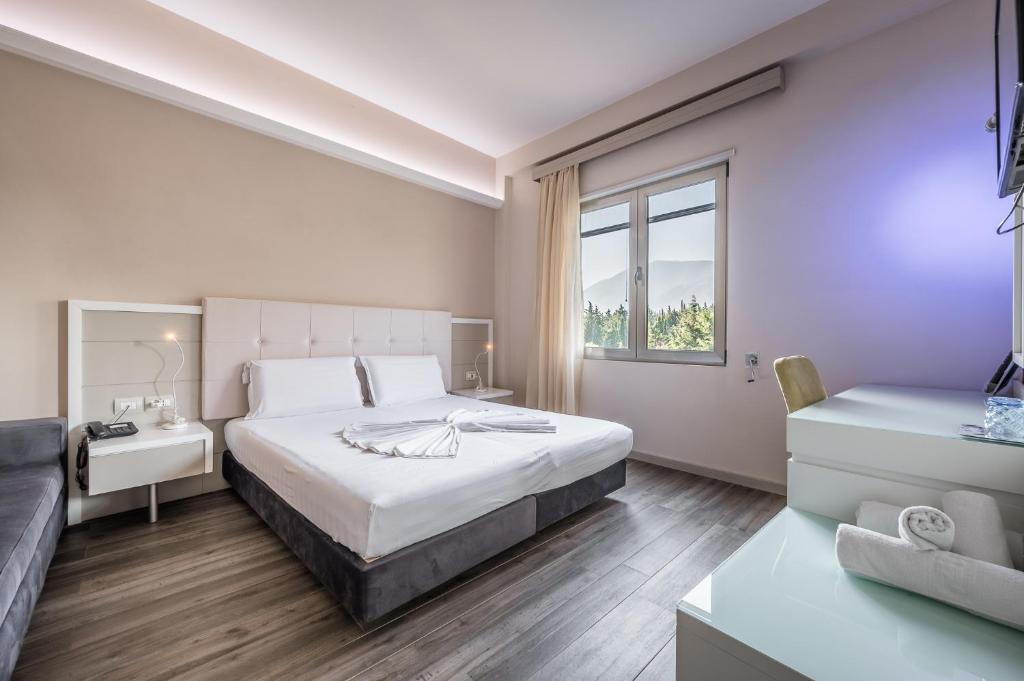 Toate camerele oferă aer, paturi foarte mari, canapea și TV cu ecran plat și canale prin cablu. Fiecare cameră are o baie proprie cu duș, uscător de păr și de toaletă gratuită. Unele camere oferă balcon privat, iar toate camerele au vedere la munte sau la mare.