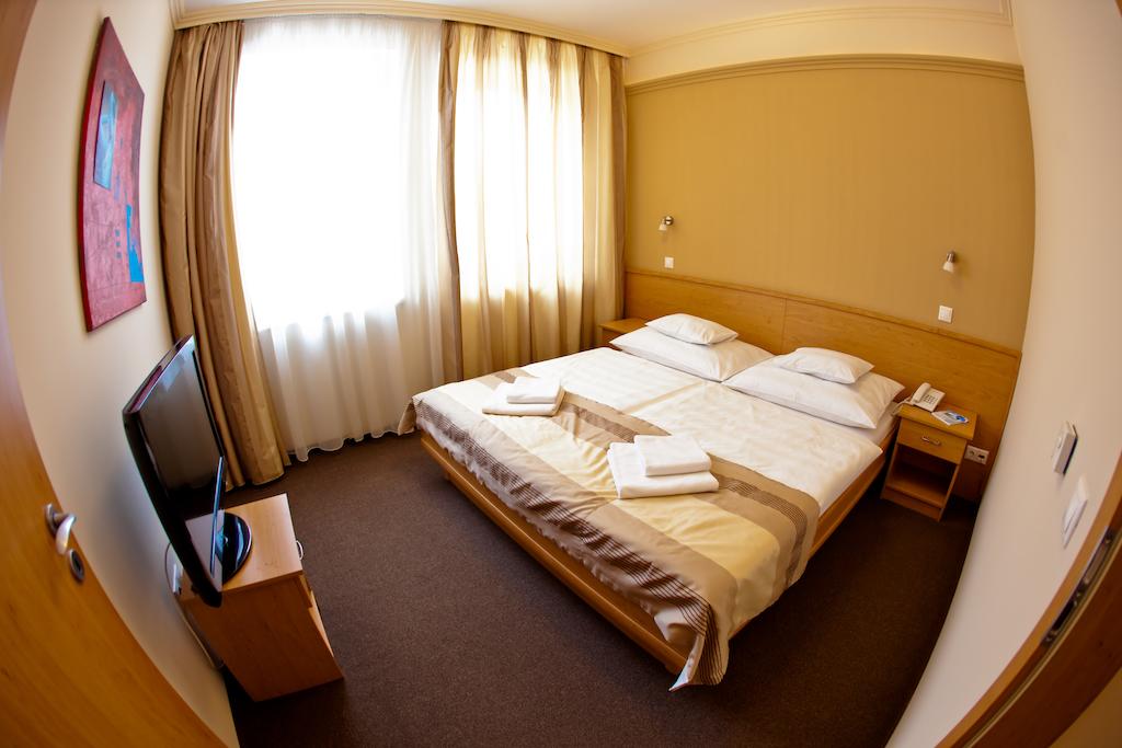 Camere duble clasic: dotate cu grup sanitar propriu, telefon, televizor, internet Wifi, minibar.