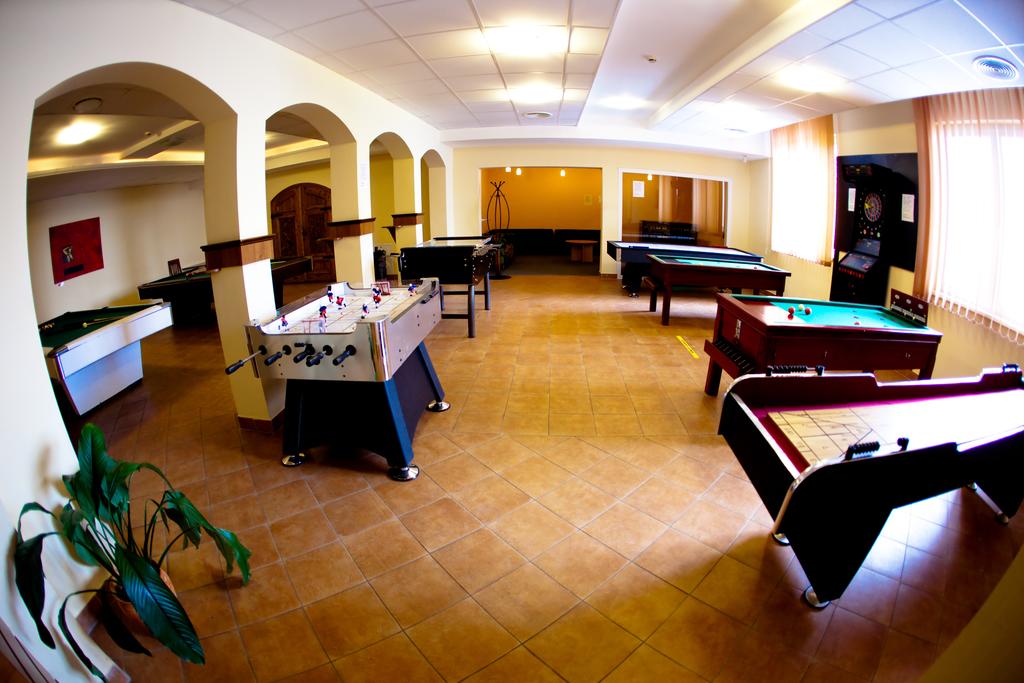 Facilităţi: restaurant, săli de conferinţe, piscină, saună, jacuzzi, infracabină, cameră salină, cabină cu aburi, infrasolar, masaj, teren de fotbal, 3 terenuri de tenis, teren de minigolf, bowling, darts, biliard, air-hockey, tenis de masă, teren de joacă, internet.