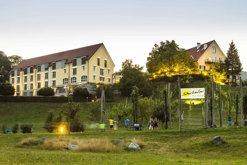 The Hotel "Staribacher" is located at the gateway to the South Styrian wine country on the outskirts of the town of Leibnitz and is the ideal destination for your journey of discovery into the picturesque hill country. The family charm of the hotel offers a feel-good atmosphere for gourmets in our à la carte restaurant, as well as for those seeking relaxation in the middle of the countryside. The natural garden terrace in the restaurant is a special highlight of the house. An indoor pool with sauna and steam bath are your personal little kingdom to switch off and relax. From here, you can discover the beauty of South Styria while hiking, biking, golfing or walking. There are several wine taverns in the immediate vicinity that are definitely worth a visit. The center of Leibnitz is 2.5 km away and offers numerous shops and cafés. The South Styrian Wine Route can be reached in around 25 minutes by car. Here, one well-known winery follows the other and invites you to a culinary tour of pleasure. You will be happy to receive an overview map of South Styria at reception. You will stay in a classic double room (30 m²) with a French balcony/not for sitting, air conditioning, minibar and comfortable country-style room furnishings. Separate bathroom and toilet. All rooms face south with a view of the landscape park. In our in-house à la carte restaurant you can enjoy delicious food in a relaxed atmosphere from Tuesday to Saturday. Traditional, upscale cuisine with a modern interpretation and served with passion. The kitchen team conjures up delights for you from regional products combined with creative cooking. Our cuisine is honest & genuine, handmade & local. You should definitely stop by here and let yourself be pampered. Right next to the hotel is the "Grottenhof Visitor Center" with a gourmet shop including a wine shop and numerous events related to music & culture. In the inner courtyard of the Grottenhof (5 minutes walk away) there is also a professional e-bike rental for bike enthusiasts. You are welcome to lock and charge your own e-bike in our in-house bicycle garage. By the way, the 4 hectare landscape park directly in front of the hotel is perfect for a relaxing walk, e.g. after a regional breakfast. Would you like to stroll through the state capital Graz? You can reach the magical old town in about 40 minutes by car. The most important information for you: Check-in from 2 p.m. | Sundays and public holidays until 12 p.m. | Check-out 11 a.m. Breakfast buffet daily from 7 a.m. to 10 a.m. Indoor pool area daily from 7 a.m. to 9 p.m., sauna & steam bath are always activated on request A bathing bag with a bathrobe & bath slippers is in your room. Free WiFi is available throughout the hotel. Free parking is available directly in front of the hotel. An e-charging station is available for a fee. Restaurant kitchen hours: Tuesday to Saturday from 12:00 to 2:00 p.m. and 6:00 p.m. to 9:00 p.m. Closed on Sundays, Mondays and public holidays We kindly ask you to reserve a table. facility / Ambiance: comfortable, small / homey, suitable for wheelchairs target audience: sport & active travellers, business travellers, couples, motorcycle travellers, nature lovers, shorttrip travellers, wheelchair user, mountainbiker / bicycle travellers, dog lovers, golf club travellers, food lovers, homosexual, long term tourists