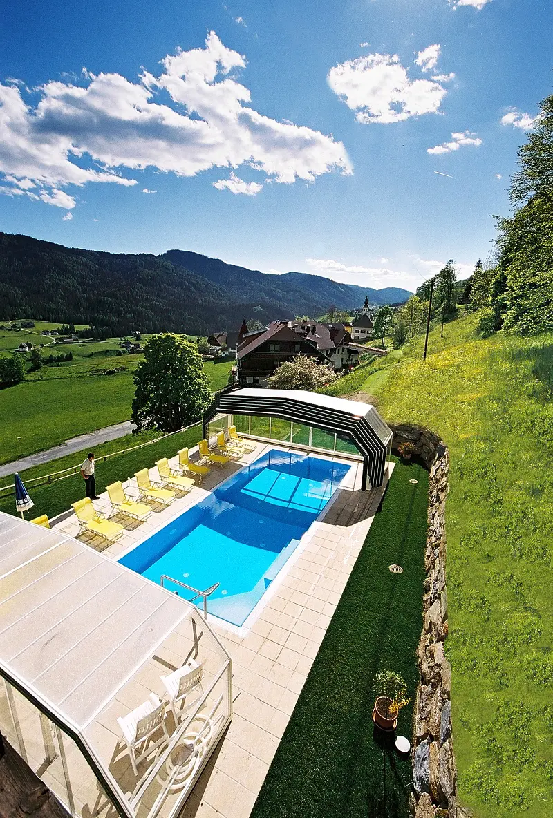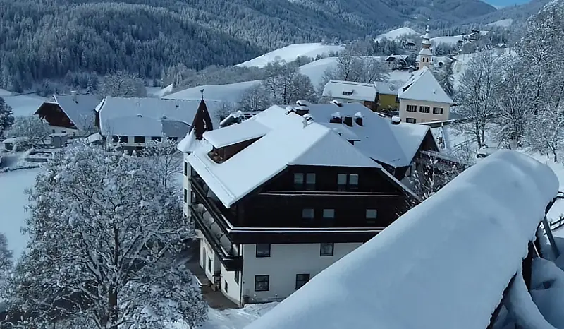 Traditional, family-run hotel and restaurant, consisting of a main building and a neighboring building, in a fantastic panoramic location high above the Kraków high valley, in the middle of the Murau organic region, on the sunny south side of the Schladminger Tauern.
