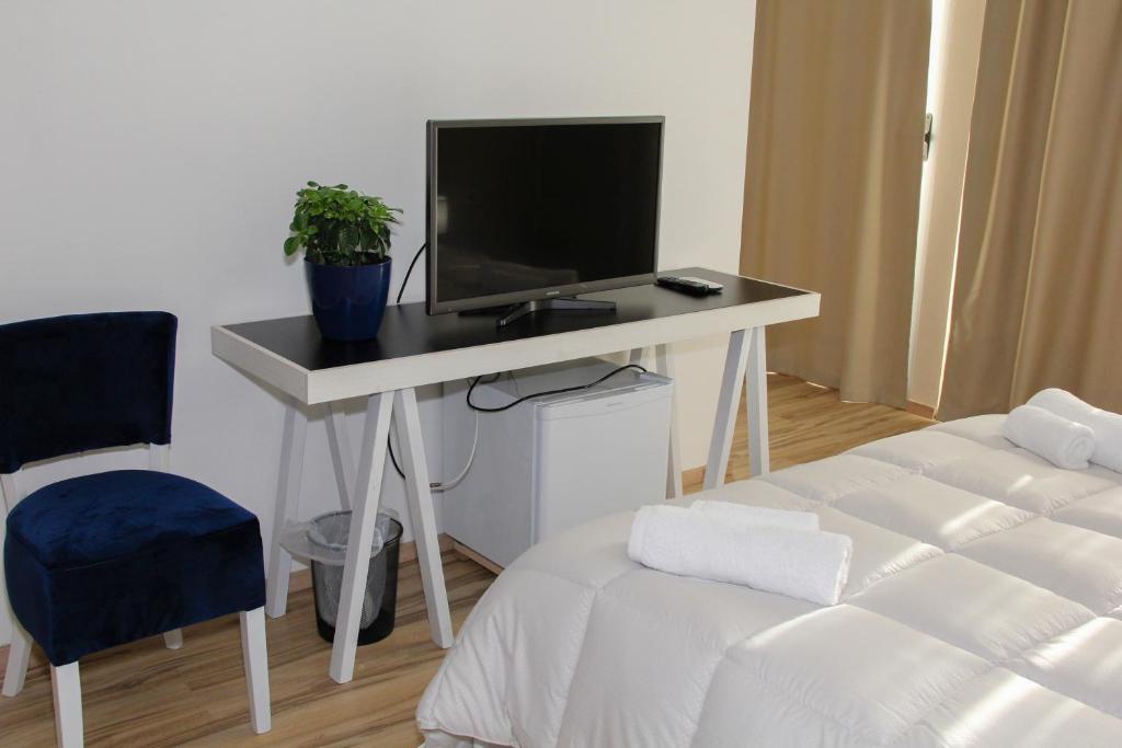 La hotel, camerele sunt dotate cu birou și TV cu ecran plat.