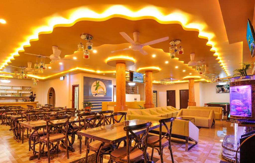Sunrise Beach are un restaurant care servește mancăruri din bucătăria americană, italiană și malaieziană. La cerere, sunt disponibile și preparate vegetariene, fără lactate și halal.