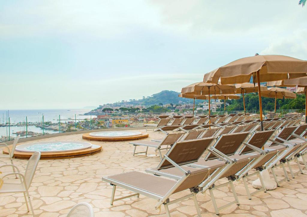 Cazare confortabilă: Hotelul Gran Paradiso din Ischia oferă camere de familie cu vedere la mare sau la munte. Fiecare cameră include aer condiționat, baie privată și WiFi gratuit.