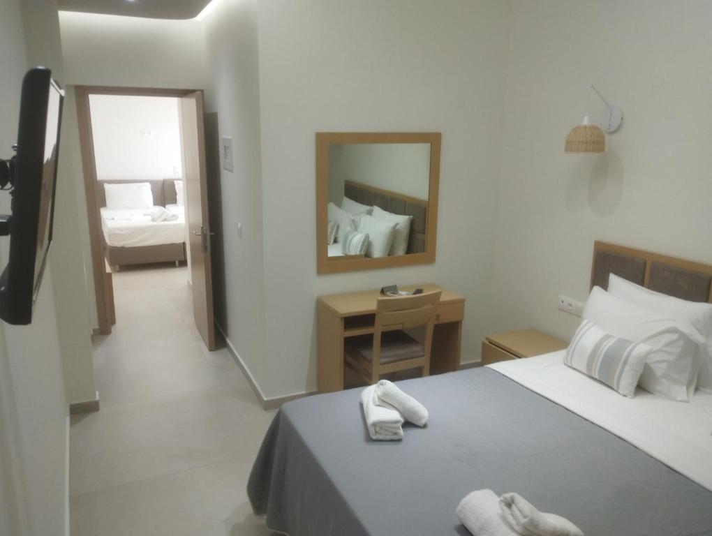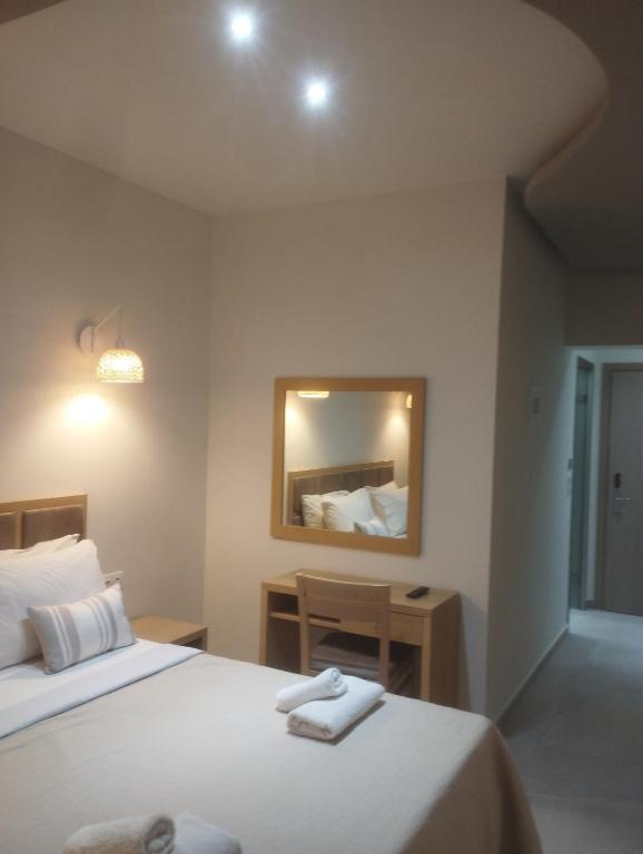 Camerele luminoase sunt dotate cu aer condiționat, TV, mini-frigider și balcon - majoritatea oferind vedere spre Marea Egee. La restaurantul hotelului puteți savura preparate tradiționale grecești și internaționale, iar barul de la piscină servește băuturi răcoritoare și cocktailuri pe tot parcursul zilei.