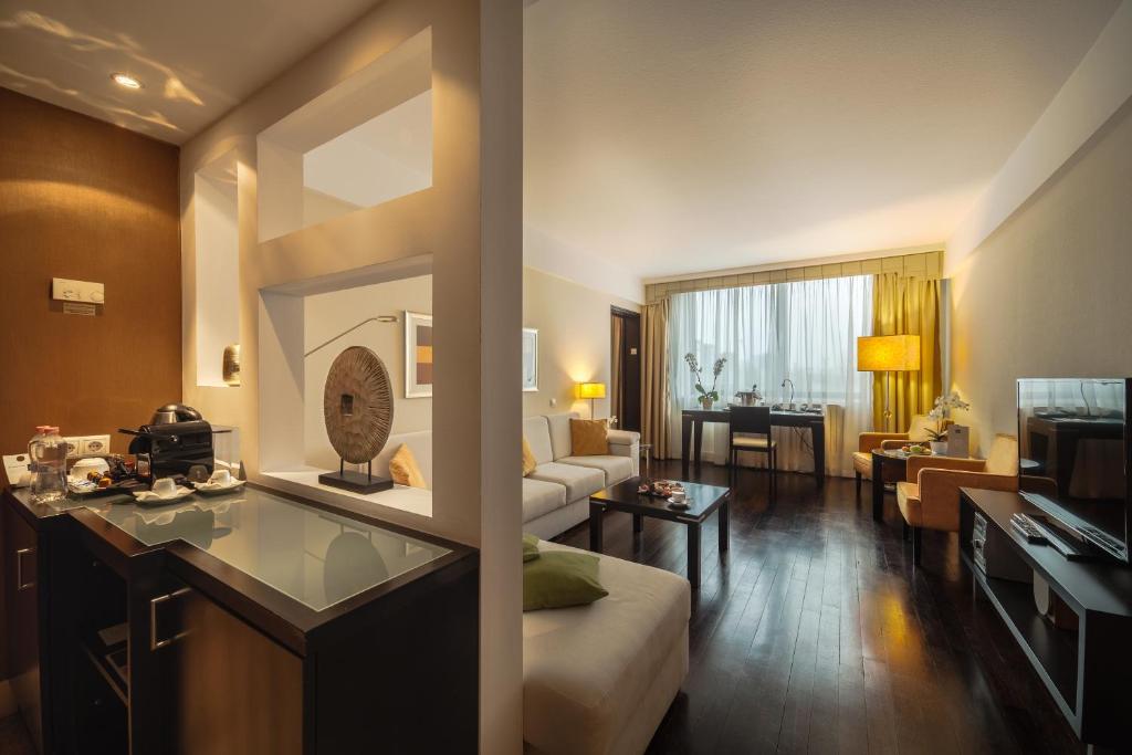 Cazare: este asigurata in camera dublă superior, cameră dublă superior cu ocupare single ( min. 24 m ), dotate cu grup sanitar propriu, aer condiționat, seif, încălzire, minibar (contra cost), ceainic, lenjerie de pat, prosoape cadă / duș, WC, uscător de păr, halat de baie, birou, zonă de relaxare, telefon, TV, wifi - gratuit