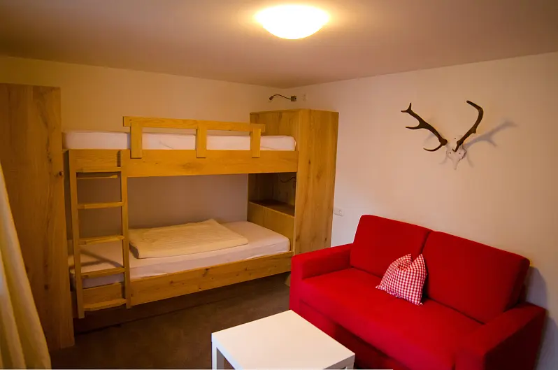 number of beds: double bed 2x, sofa bed for 1 person 1x, cot as overcrowding possible: No
