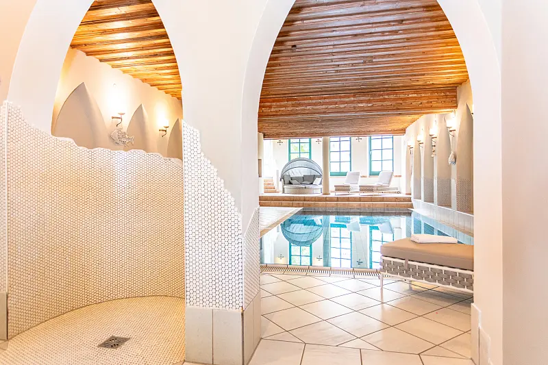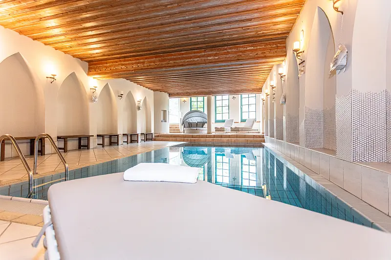size wellness area 250 m², indoor swimming pool 35 m², steam bath, sauna, finish sauna, lawn, deck chair - free of charge, sun umbrellas - free of charge