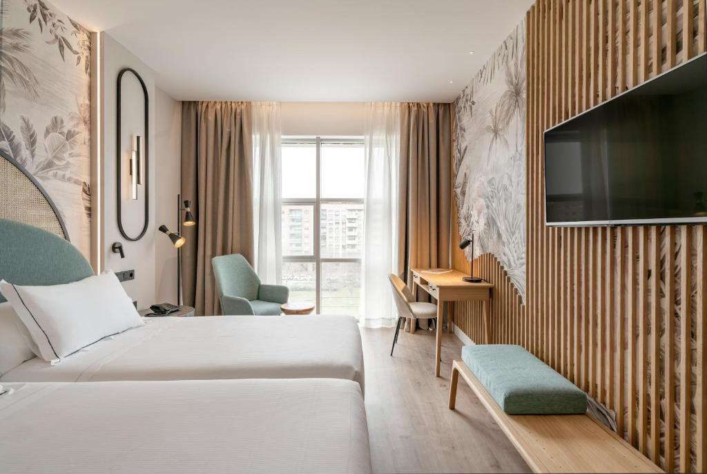 Vincci Marítimo este situat la 10 minute de mers pe jos de centrul comercial Diagonal Mar din Barcelona și de Centrul de Convenții CCIB. Hotelul oferă camere luminoase si elegante, cu TV cu ecran plat cu canale prin satelit și Wi-Fi gratuit in intreaga proprietate. Camerele cu aer condiționat de la Hotelul Marítimo au podea cu parchet si decor modern, cu imagini relaxante ale mării. Acestea au un meniu de perne și o baie privată cu uscător de păr. Camerele au vedere la fermecătoarea grădină japoneză Zen sau la parcul Diagonal Mar.