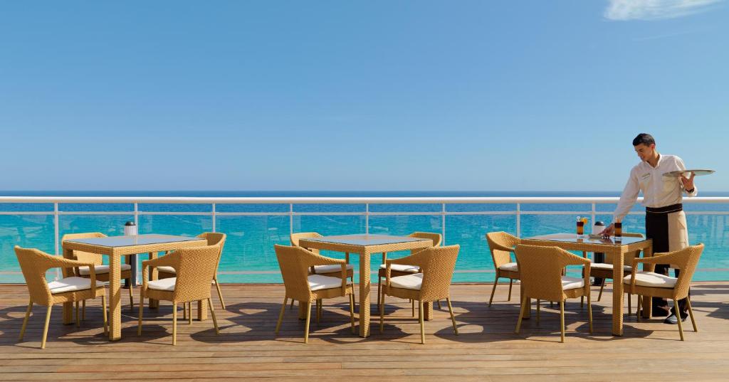 Hotelul are un restaurant tip bufet care servește o gamă largă de preparate mediteraneene și internaționale. Un pranz ușor este servit pe terasă, iar la dispoziție există și un bar unde puteți lua o gustare sau o băutură.