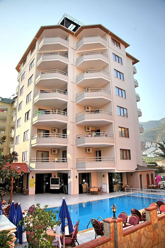 Just a stones throw from the famous sandy Kleopatra Beach, this apart hotel is a great place to spend ones holidays. A private beach area and an outdoor pool with childrens area are available. The centre of the historical city of Alanya with its restaurants, bars, cafés and shops is within walking distance, attractions such as the castle, the Red Tower or the Archaeological Museum are within easy reach.
