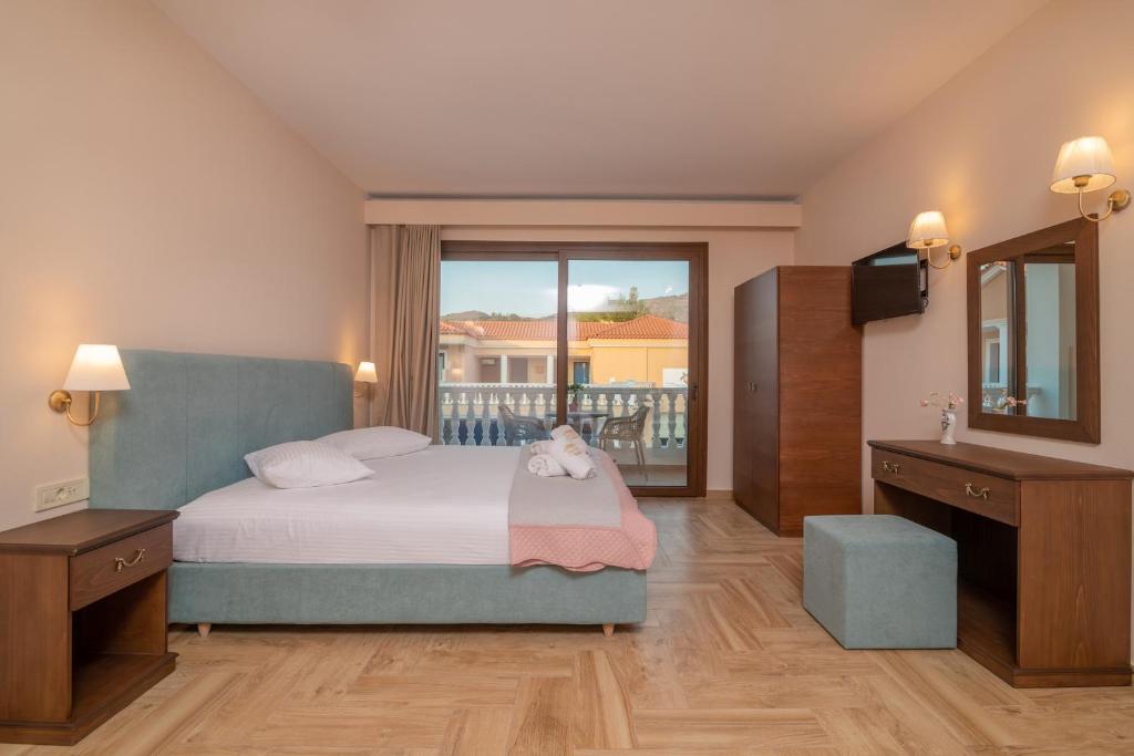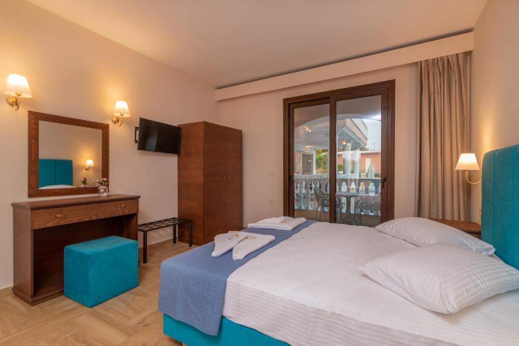 Cazare confortabilă: Hotelul Zante Holidays din Zakynthos oferă camere de familie cu aer condiționat, băi private și facilități moderne. Fiecare cameră include un balcon sau o terasă cu vedere la piscină, o chicinetă și o zonă de luat masa.