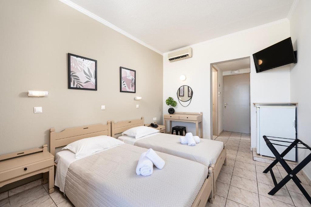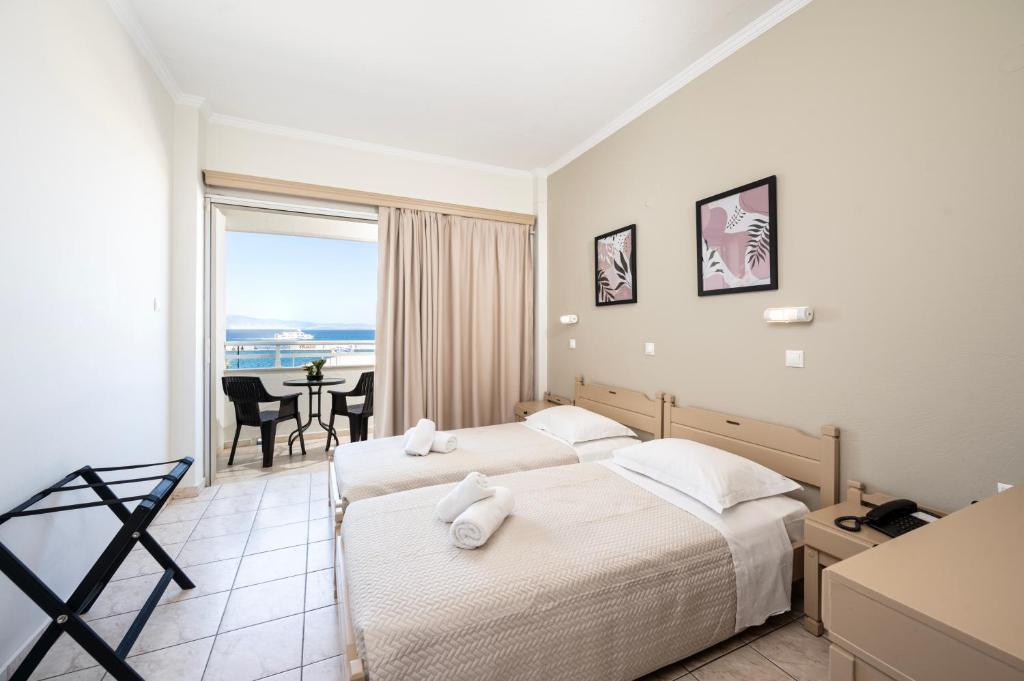 La acest hotel, toate camerele au balcon. Fiecare cameră oferă climatizare și televizor cu ecran plat, iar anumite unități de la Zephyros Hotel o vedere la oraș. La Zephyros Hotel, camerele sunt echipate cu lenjerie de pat și prosoape.