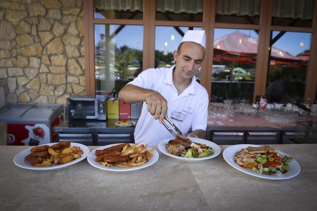 Facilități de wellness: piscină exterioară 225 m², piscină interioară 80 m², baie de aburi, saună, saună finisaj, saună bio, piscină cu apă termală, masaj -contracost, centru de înfrumusețare - opțional se plateste la stațiune, solar - contracost, grădină, gazon, șezlong , umbrele de soare - gratuit