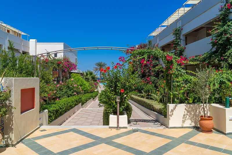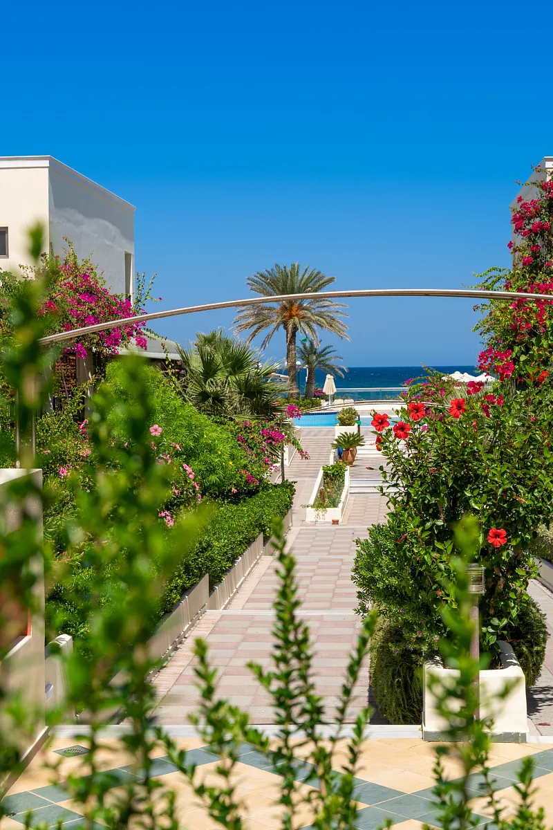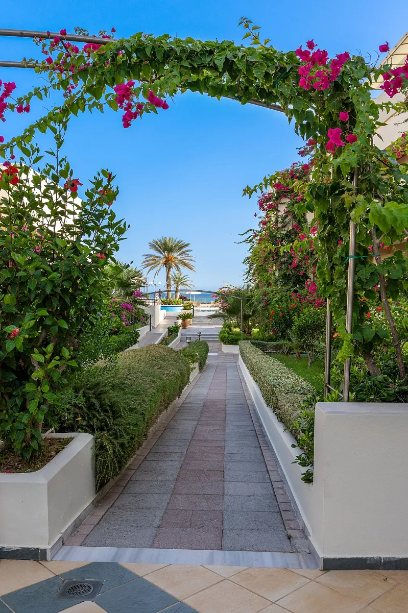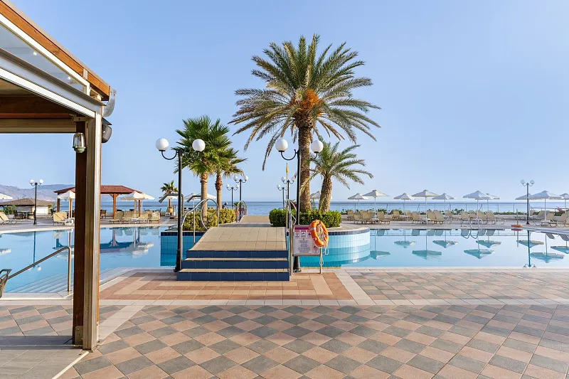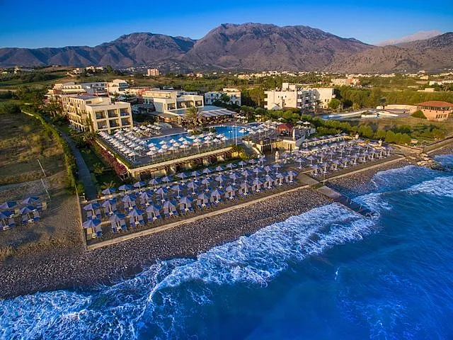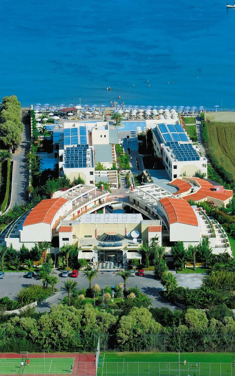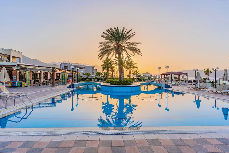 A 2004 built hotel complex on huge site, A’ category (4*), situated on the beach of Georgioupolis, between the traditional towns of RETHYMNO (15km) and CHANIA (40km), named after the ancient city of HYDRAMIA. In a friendly environment provides easy access to historical monuments, traditional villages and points of natural beauty of the western part of the island. (Samaria’s gorge, Kourna’s lake, Arkadi, Elafonissi, Argyroupoli’s springs, etc) The complex looks like a cosmopolitan village with pleasant walkways and gardens. The hotel offers excellent hospitality in pleasant surroundings and is good for any age group.