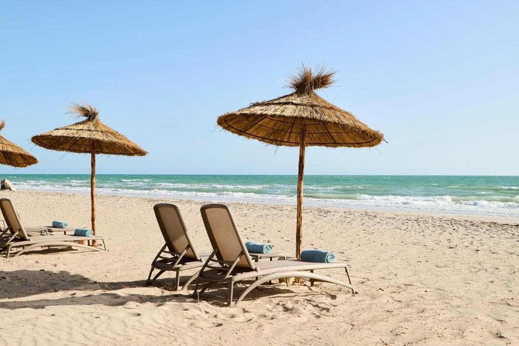 Experiența culinară este completă grație celor 4 restaurante care servesc specialități tunisiene, mediteraneene și internaționale. Centrul Spa oferă tratamente tradiționale hammam, iar pentru cei activi există terenuri de tenis, facilități pentru sporturi nautice și un centru fitness modern.
